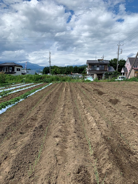 恵みの雨で育つのは、野菜だけではありません。雨が降れば、雑草も伸び伸びと育ってしまいます。本日(6月29日)は、梅雨の晴れ間に除草です。長ネギが定植してある畝と畝間の除草をしました。