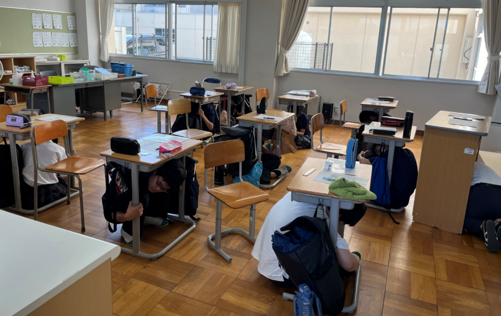 生徒からは、「しゃべらず落ち着いてできた」「窓の近くには行かないと決めている」「シェイクアウト訓練が身に付いた」「自分の命は自分で守りたい」などの意見が挙がりました。