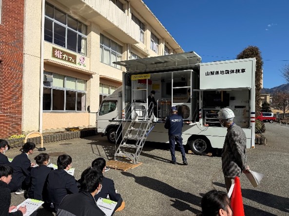 当日は、笛吹消防署と山梨県立防災安全センターの指導で煙体験、起震車体験、消火訓練等を行い、「いざ」という時の行動の仕方を学ぶ機会となりました。