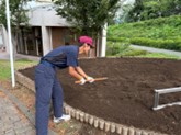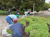 環境メンテナンスコース2・3年生(3班・4班)で、金川の森へ行き花壇の整備をしました。今回はジニアを摘み取り、肥料をまいて整地しました。1週間ほど肥料を馴染ませた後に、パンジーとビオラの植え付けをする予定です。