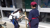 窓清掃では、授業で学んだことを一生懸命伝えようとする姿が見られました。生徒たちは、教えることの難しさを実感し、他校の生徒と関わり学び合うことの楽しさを感じたようです。生徒たちにとって、貴重な経験となりました。