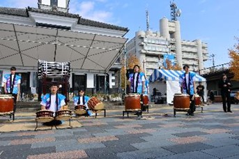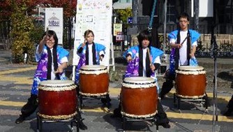 秋晴れの甲府駅よっちゃばれ広場で「山梨県障害者芸術・文化祭」が開催されました。太鼓部の1~3年生が出演し、「清爽桃花の気吹」を演奏しました。1年生は校外での演奏が初めてでしたが、イベントの雰囲気を満喫しながら演奏し、終始笑顔でした。