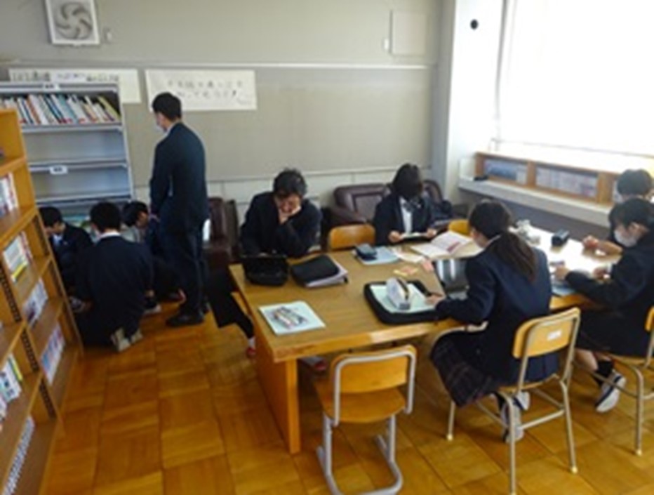 図書委員会では、本の整理や紹介放送、ポスター作りなどを通して、全校生徒が気持ちよく図書室を利用できるよう活動しています。この日は、図書の整理と図書室の飾り付けを行い、明るく楽しい空間づくりに取り組みました。