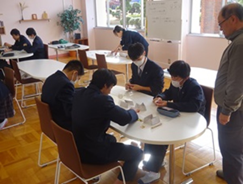 ボランティア委員会では、古切手やペットボトルキャップの回収など、身近なところからできるボランティア活動に取り組んでいます。この日は、回収したベルマークを集計し、台紙に貼り付ける作業を行いました。