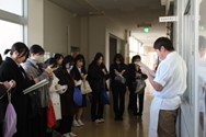 見学は専門教科の各コースを中心に校内を回りました。コースの説明は3年生徒が行い、学生からの質問にも答えました。見学後は本校職員と学生で意見交換等を行いました。