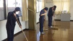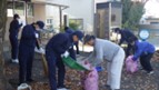 女性部の皆さんとの会話を楽しみながら、たくさんの落ち葉を集めたり、調理室や会議室、廊下等の清掃を行ったりしました。植栽活動では、生徒が作ったジニアとパンジーのプランターを玄関に設置させていただきました。清掃では、授業で習得したタオルや自在ほうき、湿式モップ等の清掃技術を発揮する場にもなりました。