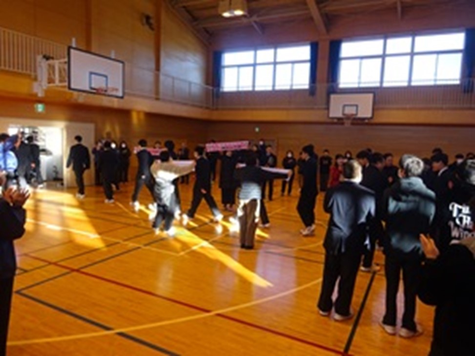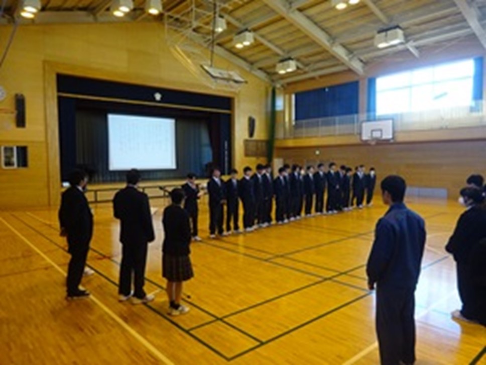 令和8年1月24日(土)・25日(日)に開催される「もうひとつの高校選手権」全国大会に出場するサッカー部の壮行会を行いました。代表生徒から対戦相手や大会のレギュレーションについての説明があり、2年ぶりとなる全国大会への意気込みが力強く述べられました。その後、全校生徒が応援歌を合唱し、サッカー部員へ温かいエールを送りました。