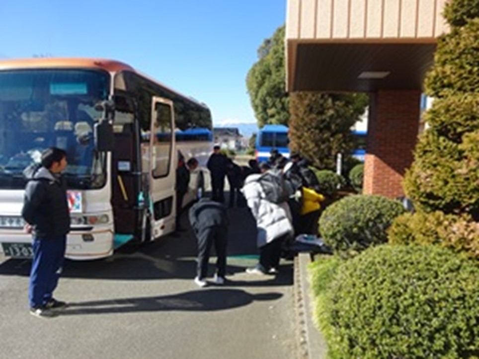 山梨県立高等支援学校桃花台学園 > 部活動 > サッカー > サッカー部全国大会壮行会 2026年1月23日カテゴリー: サッカー 部活動 サッカー部全国大会壮行会 令和8年1月24日(土)・25日(日)に開催される「もうひとつの高校選手権」全国大会に出場するサッカー部の壮行会を行いました。代表生徒から対戦相手や大会のレギュレーションについての説明があり、2年ぶりとなる全国大会への意気込みが力強く述べられました。その後、全校生徒が応援歌を合唱し、サッカー部員へ温かいエールを送りました。 また、出発の際には、当日に「桃カフェ」を利用してくださっていた地域の皆さまからも温かい声援をいただきました。 大会当日は、応援のために制作した桃花台学園のマフラータオルを掲げ、心を一つにしてサッカー部の健闘を後押ししたいと思います。 決意表明 拍手に包まれて退場運転手さんへ挨拶