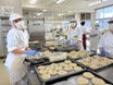 今日は食品加工コースで給食パンを製造しました。具材に農業生産コースで栽培した白菜を使い、自家製のベシャメルソースとチーズの濃厚な味わいの「白菜グラタンパン」に仕上げました。この白菜は、規格外の白菜ですが、味は抜群です。農業生産コースと食品加工コースの生徒がお互いにほめ合う姿も見られ、給食週間の最終日にふさわしいメニューとなりました。