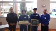 有限会社ワイ・エス・ケイ社長の志村様と株式会社タイム代表の雨宮様にご来校いただき受納式を行いました。
