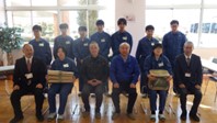 受納式には環境メンテナンスコースの3年生9名が参加し、寄贈品としてワックスと自在ぼうきのヘッドを受け取りました。
