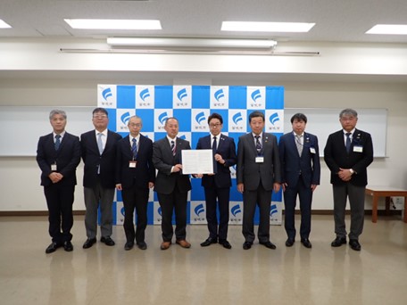 笛吹市と本校による、災害時等における避難所及び避難地の利用に関する協定調印式が笛吹市役所で行われました。調印式では、趣旨説明が行われ、本校近辺で想定される災害に応じて本校の敷地や施設を避難所及び避難地に利用することが締結されました。      今後は、この締結に従って、災害時に避難者を受け入れ、快適に過ごせる空間を提供できるように笛吹市と協議しながら進めていきたいと思います。