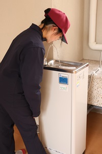 冷水器は活用頻度の高い生徒用玄関の脇に設置。登校直後や専門教科、体育の後など熱中症対策にも効果を発揮してくれます。