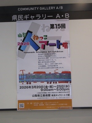 山梨県立高等支援学校桃花台学園 > 部活動 > 美術 > 「山梨・人ねっこアート展」に出展しました 2026年3月24日カテゴリー: 部活動 美術 「山梨・人ねっこアート展」に出展しました 3月20日(金)~25日(水)まで、山梨県立美術館で「山梨・人ねっこアート展」が開催されました。本校の美術部からは、4点の作品を出展しました。応募年齢が15歳以上ということもあり、陶芸や書、押し花など、とても目を引く作品が数多く展示されていました。その中でも桃花台学園の作品は、堂々としていて、とても素晴らしかったです。学校を卒業してからも、美術を通して活躍できる場があることに、とても喜びを感じました。