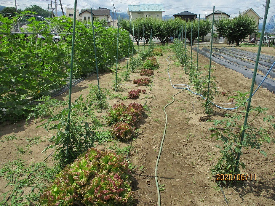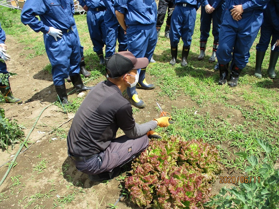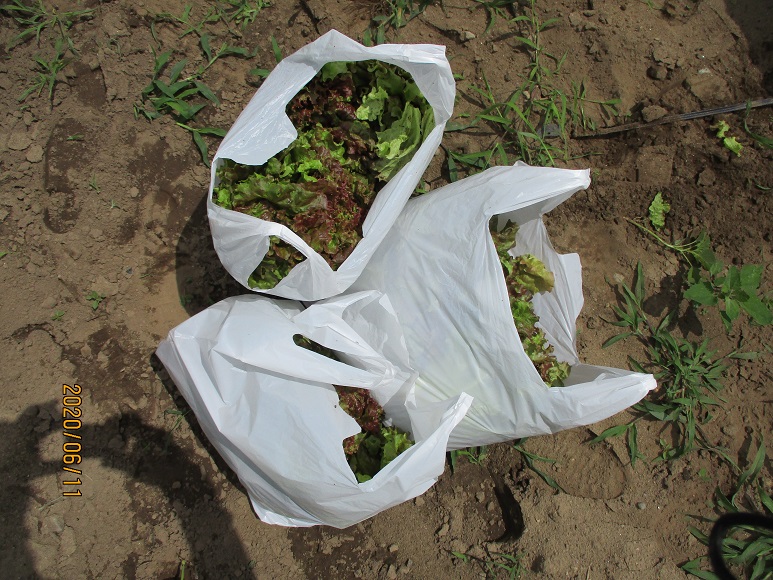 令和2年6月10日(水)1年CD組、11日(木)1年AB組の生徒が本校農場「ひとり農園」にて、リーフレタスの収穫を行いました。「ひとり農園」とは一坪ほどの面積で、個人の責任で管理する農園です。今回収穫されたリーフレタスのほかに、ミニトマトが栽培されています。今後二十日大根(ラディッシュ)の種まきを行う予定です。