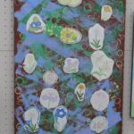 美術部は、美術室に集まると、それぞれが制作の準備をし、作品作りに取り組んでいます。色鉛筆や絵の具、クーピーなどを使い、自分の作品を想うように作り上げています。困ったときには、顧問に相談しアドバイスをもらいながらそれぞれの感性を発揮しています。